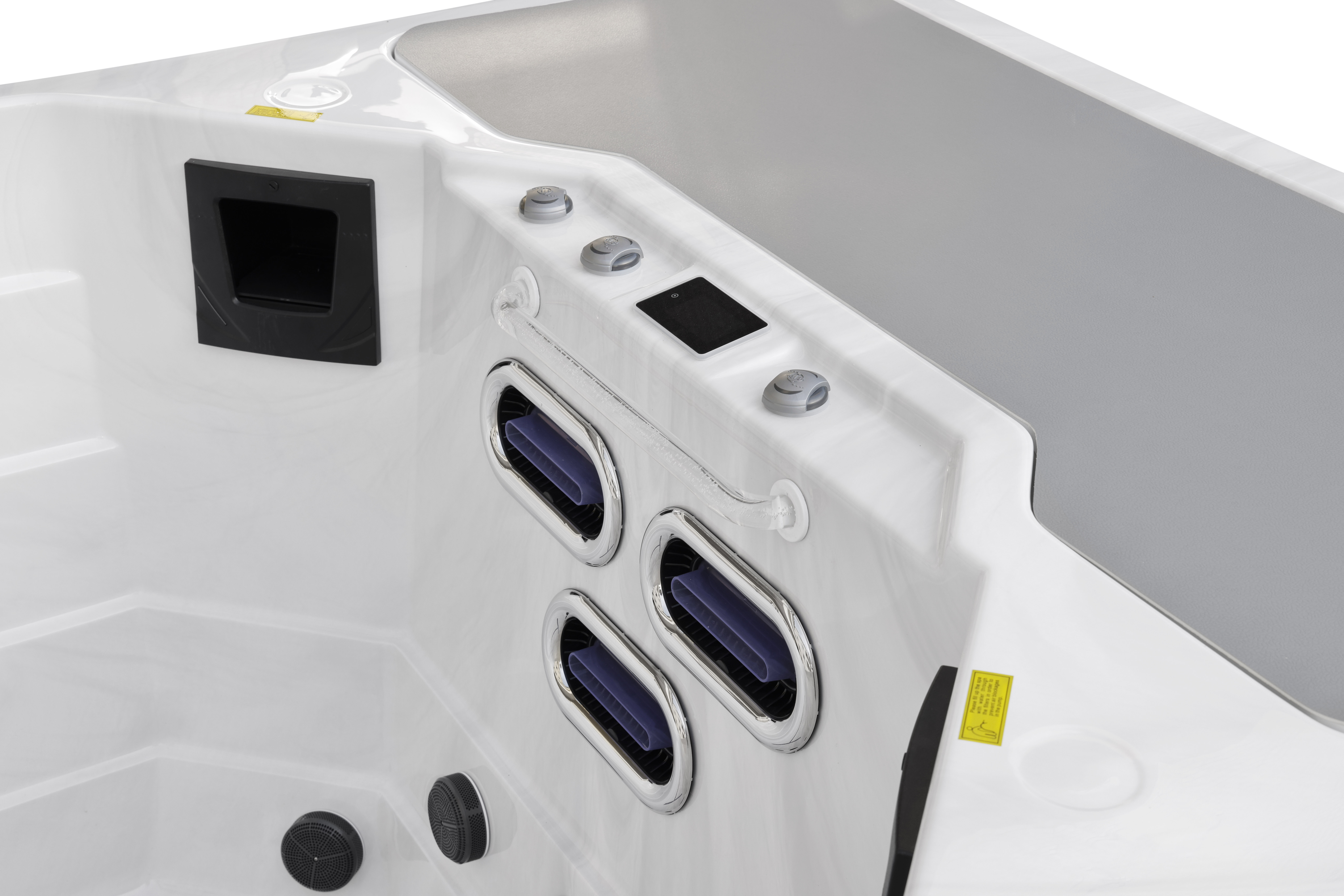 Три водяных насоса мощностью 2,2 кВт взаимодействуют слаженно, создавая оптимальные условия для глубокого расслабления. Тщательно разработанная система циркуляции гарантирует равномерное распределение потоков воды для максимального удовольствия.